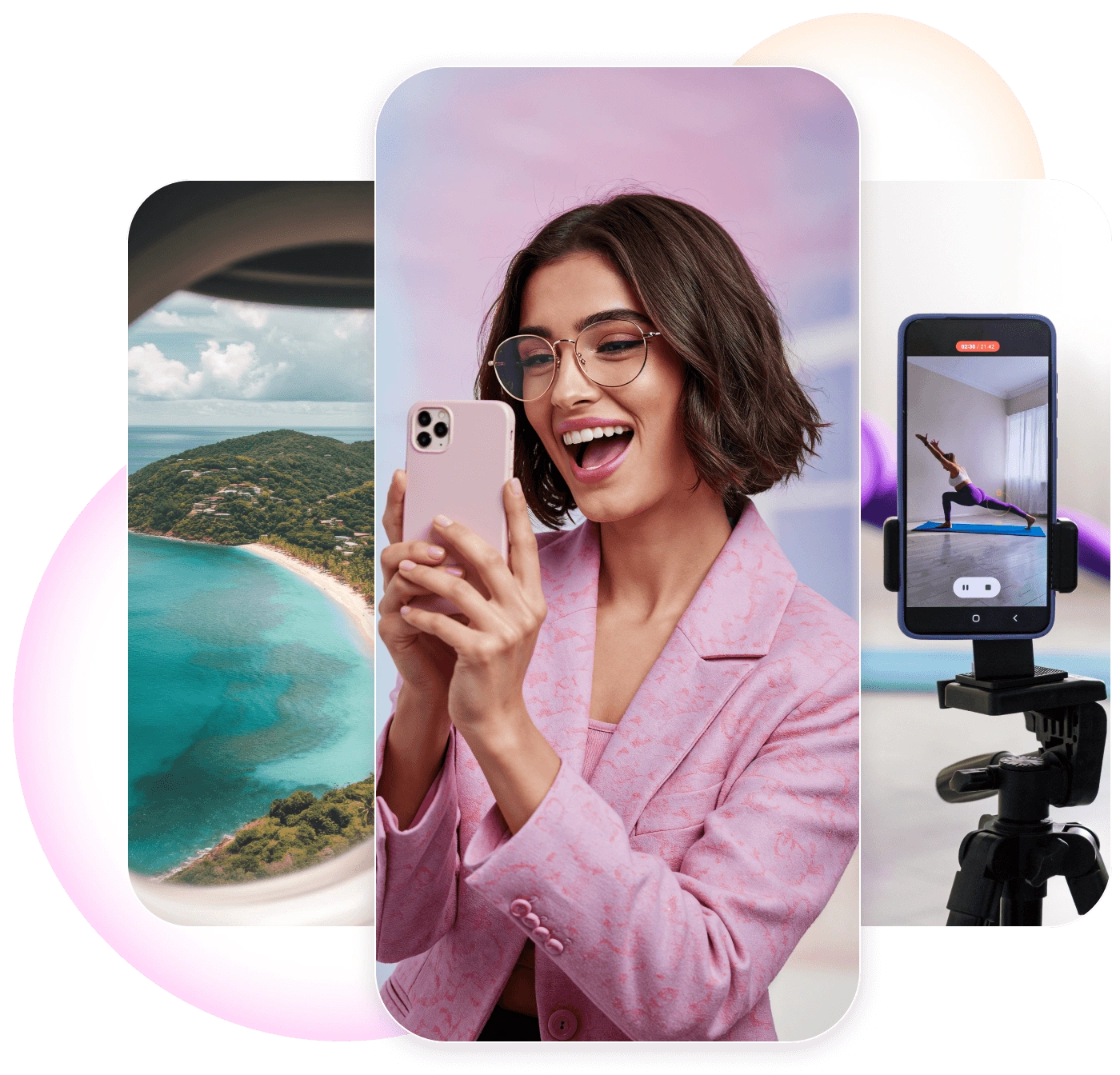 Recibe tu reel creado con IA en segundos. Revisa cada escena, cambia imagenes, ajusta el texto, modifica las transiciones y afina los tiempos. Exporta en el formato correcto para cualquier plataforma.